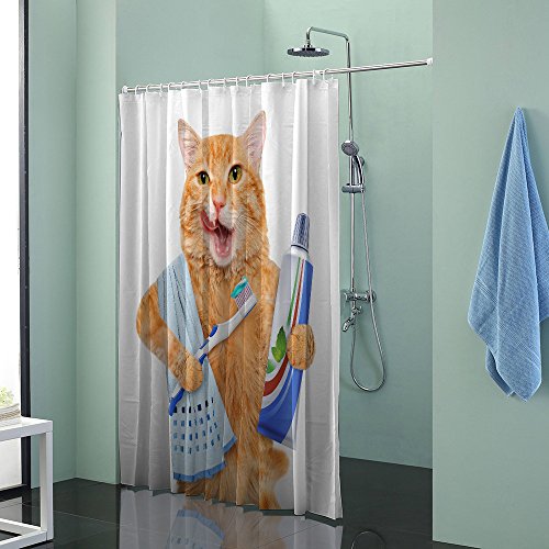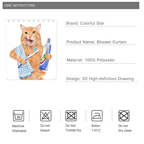 Colorful Star Fat cat brushing teeth Design Shower Curtain ,Waterproof&Antibacterial&Eco-Friendly made of 100% Polyester Fabric ,Non Toxic, Odor Free, Rust Proof Grommets 72"x72"
