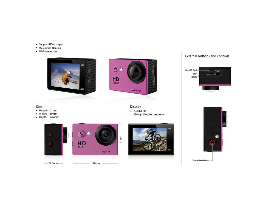 Video: 1920*1080 pixels @ 30 fps (H.264) 1280*720 pixels @ 60 fps (H.264)