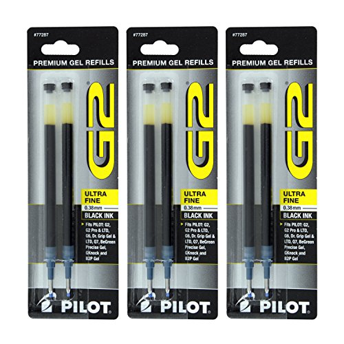Pilot G2, Dr. Grip Gel/Ltd, ExecuGel G6, Q7 Rollerball Gel Ink Pen Refills, 0.7mm, Fine Point, Black Ink, Pack of 12