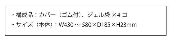 ●ジェル袋(日本製):水、多価アルコール、高分子吸水樹脂、ポリエチレン