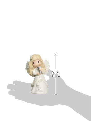 A beautiful angel presents a Chalice and a special blessing in honor of his or her first Communion day. Commemorates the blessed sacrament of first Holy Communion sweetly and reverently. Give as a first Communion gift to a first communicant of any age. Meticulously sculpted of fine bisque porcelain and expertly hand painted. Approximately 4.75 inches highFeature