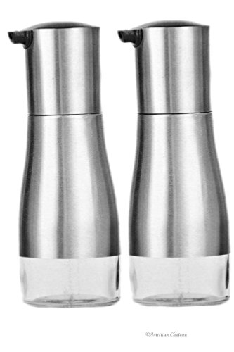 -. Title : Set 2 Modern Olive Oil and Vinegar Glass Stainless Steel Drizzle Cruet Bottles