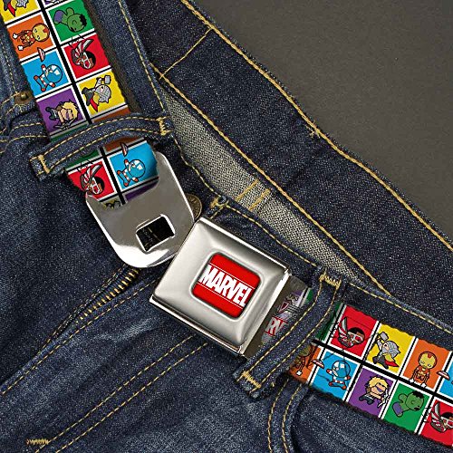 ReleaseDate : 2017-09-02 Studio : Buckle-Down - Parent Vendor Code Publisher : Buckle-Down - Parent Vendor Code Binding : Apparel Product Description Buckle-Down's iconic Seatbelt Belt is a cool, smart, and exciting blend of fashion and function. Always a conversation starter, our Seatbelt Belt adjusts to perfectly fit your waist while showcasing your unique sense of style. Our Seatbelt Belts are made with authentic automotive style seatbelt buckles making them easy to open and close at the push of a button. Our Seatbelt belts are 1.5 inch wide and are infinitely adjustable for pants sizes 32 to 52. This product is Handcrafted in USA by Buckle-Down Inc. and Officially Licensed by Marvel Comics. 0