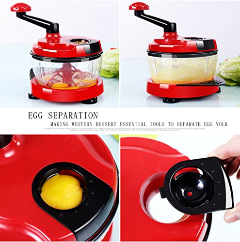 Manual Food Processor Baby Food Chopper Food Grinder Red 2000ml Food Mixer Blender to Chop Meat Fruits Vegetables Nuts Herbs Onions Garlic Tomato (RED)