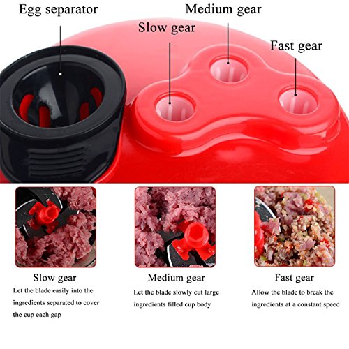 - MULTI - PURPOSE FOOD PROCESSOR- The Meat grinder is consists of three kinds of speed, 4 sharp stainless steel blades, 1 egg separator and a large container.It can not only be used for cutting vegetables, meat, garlic, etc., but also can be used to cut a variety of baby daily food