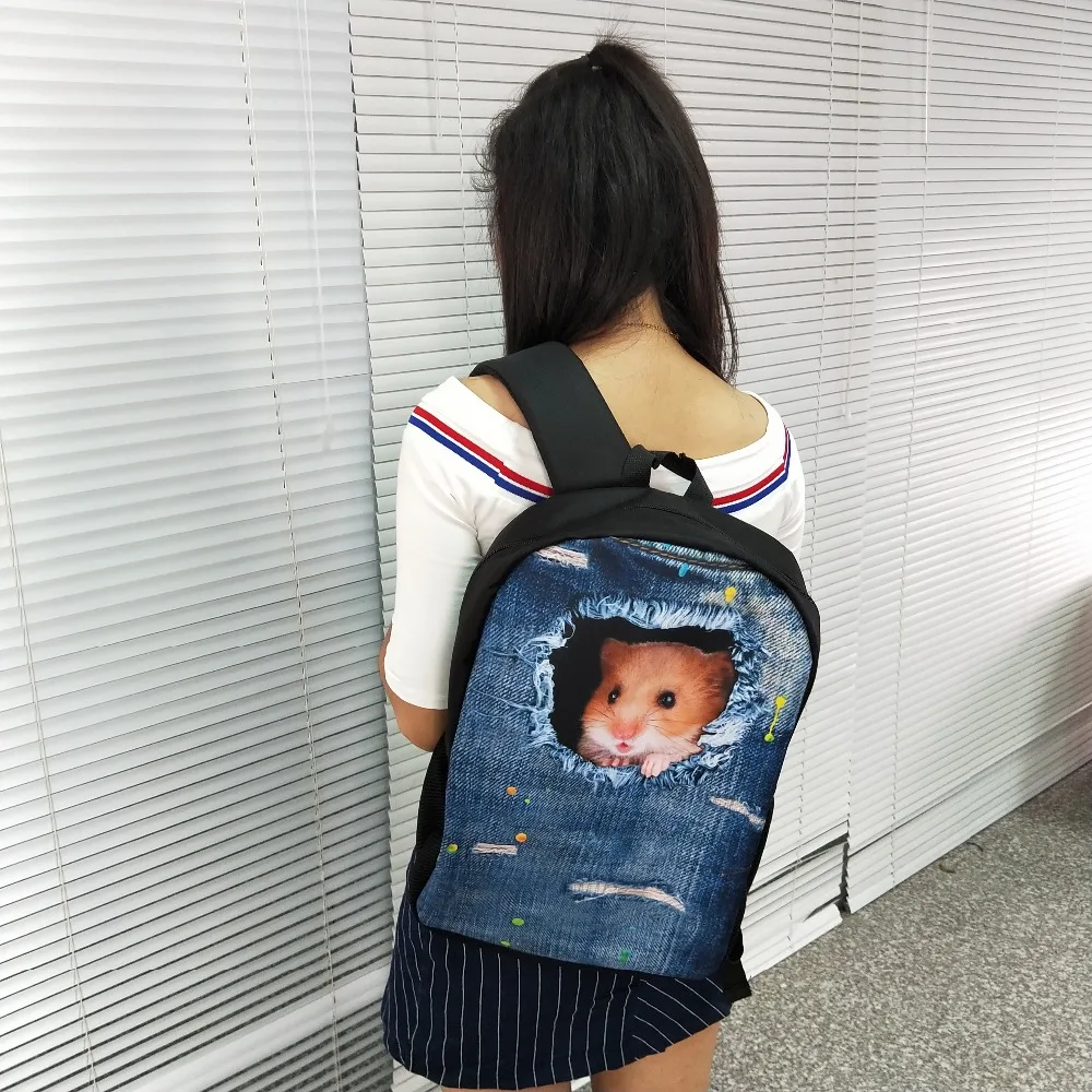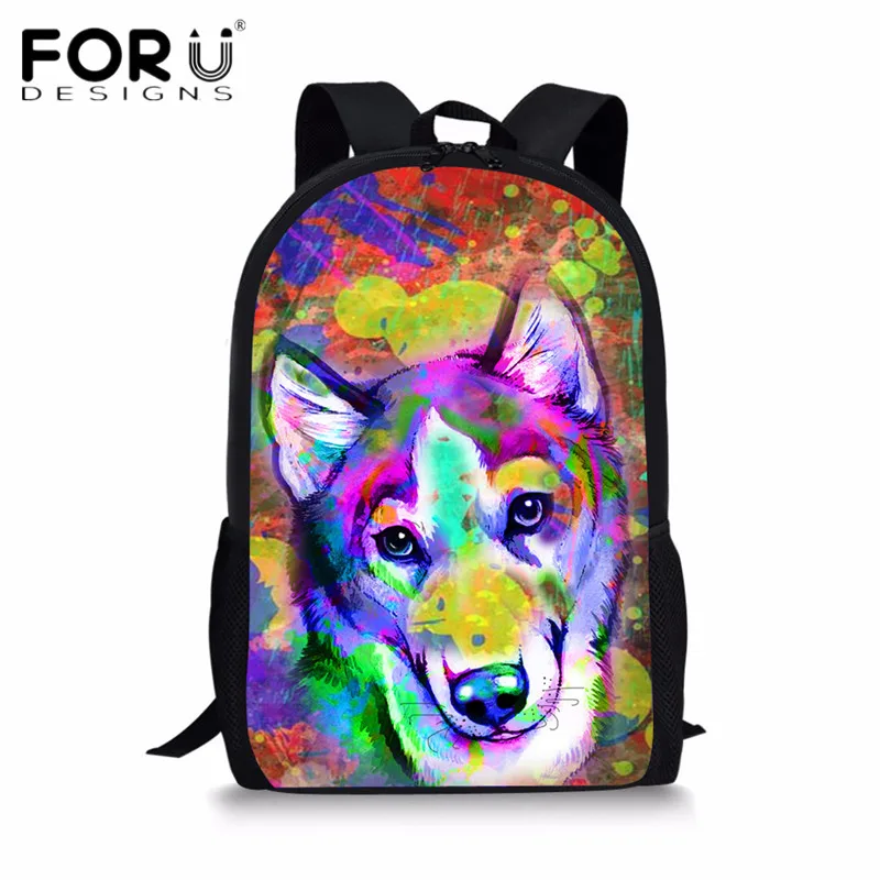 Pattern :customized cool animal wolf horse ferret printing backpack female