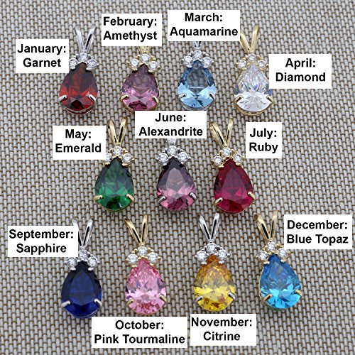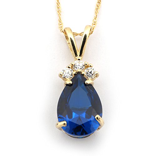 -. Title : 14k Gold September Birthstone Simulated Sapphire CZ Pear Cut Teardrop Pendant or Necklace