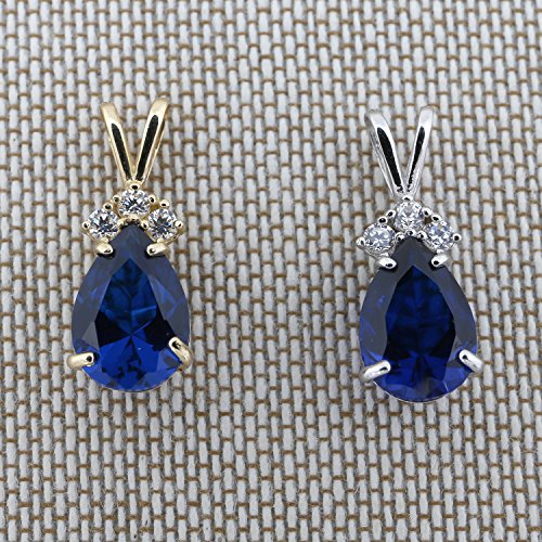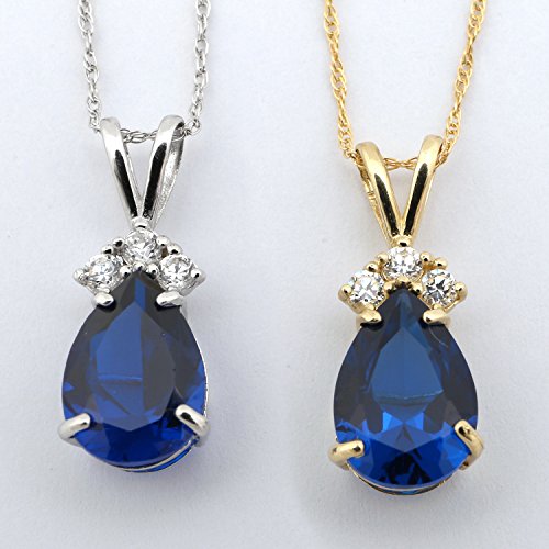 -. Feature : This chain and pendant are made of solid 14k gold, simulated sapphire and cubic zirconia stones. The necklace is available in either yellow or white gold. / The weight of the pendant is 1.1g, the 18" necklace weighs 1.7g, the pendant measures 7mmx13mm, the center stone measures 7mmx10mm (1.8ct), the length of the bale is 5mm, the chain is 0.85mm thick and either 13, 15, 16, 18, 20, or 22 inches long. To purchase just the pendant, choose the 0.0 inch length. / 13" length is recommended only for small children. The 15" length is great for small children as well, or can be worn as a choker on an average size adult. The 16" length will fall just above the collarbone on an average sized adult woman, and an 18" chain will fall just below the collarbone. We strongly recommend using a tape measure to check neck size before placing your order to help choose the best length chain. / Comes with a gift box and free shipping.