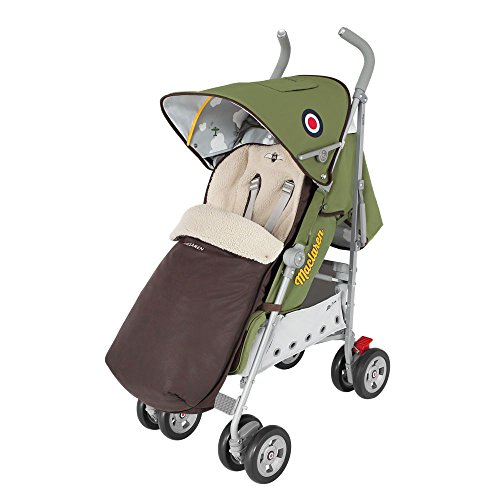 50th anniversary coin insert on hood tensioners Luxurious leather handles Aviator fashion-inspired cosseting head hugger and shoulder pads included: coordination footmuff in antique faux leather printed rain cover and rain cover storage punch, buggy ID Tag