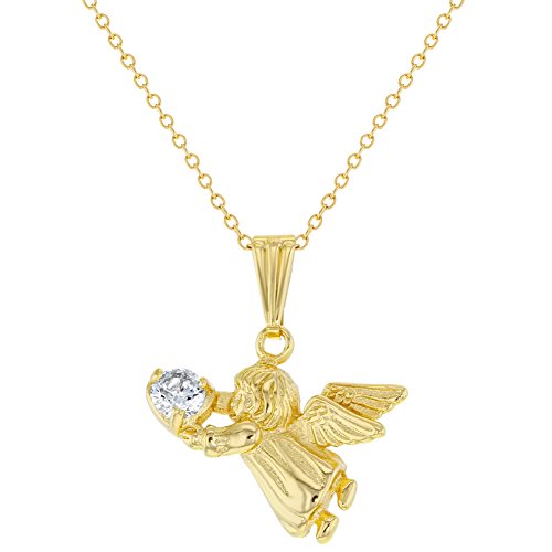 -. Title : 18k Gold Plated Guardian Angel Pendant Necklace Kids Girls Children CZ 16"