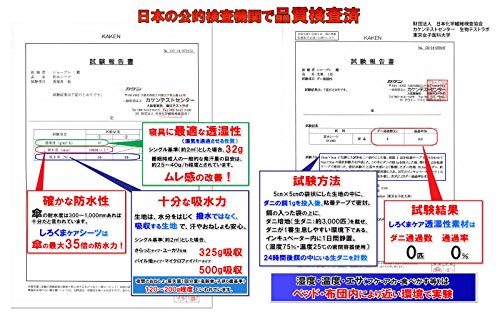 -. Feature : 呼吸する防水素材 透湿性防水素材使用で蒸れを軽減! 寝具を汚さず 衛生的にお使いいただけます。
