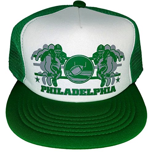 -. Binding : Apparel -. Brand : ThatsRad -. Color : Green -. Department : womens -. EAN : 0708038996486 -. Feature : Foam front / Mesh back / Plastic adjustable snap back -. ProductGroup : Apparel -. ProductTypeName : HAT -. Size : adjustable snapback -. Title : Philadelphia Football Green Mesh Trucker Hat Cap Snapback -. UPC : 708038996486