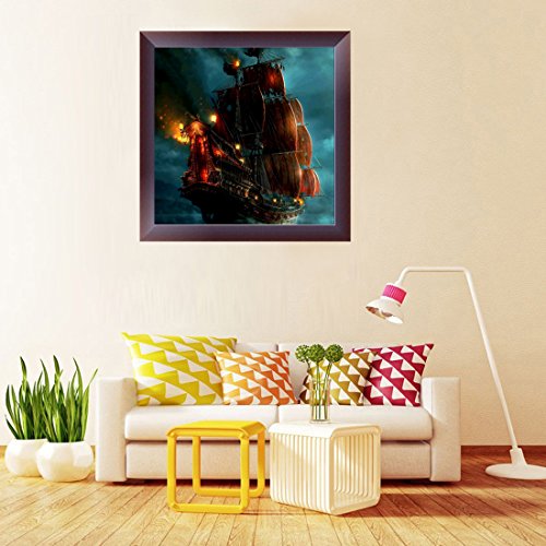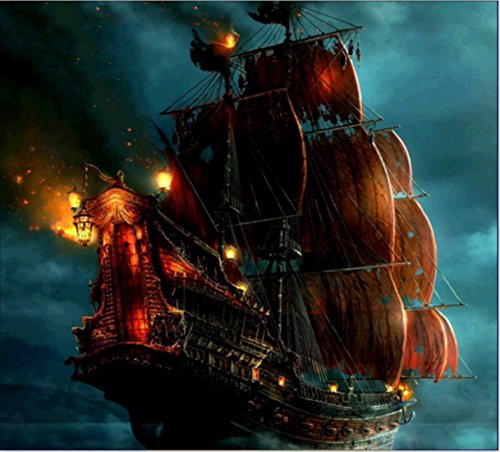 DIY 5D Diamond Painting by Number Kit, Pirate Sailboat Crystal Rhinestone Embroidery Cross Stitch Arts Craft Supply Canvas Wall Decor
