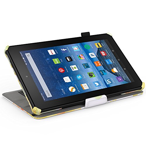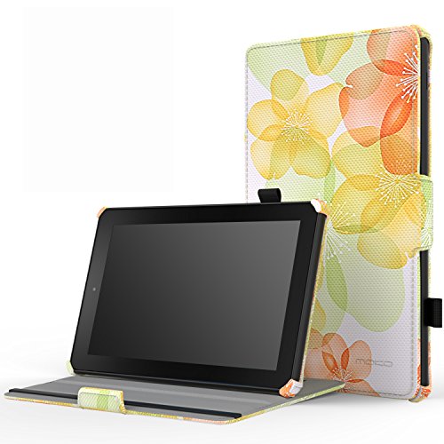 MoKo Case for Fire 2015 7 inch - Slim-Fit Multi-angle Folio Cover for Amazon Fire Tablet (7 inch Display - Previous 5th Generation, 2015 Release Only), Floral GREEN