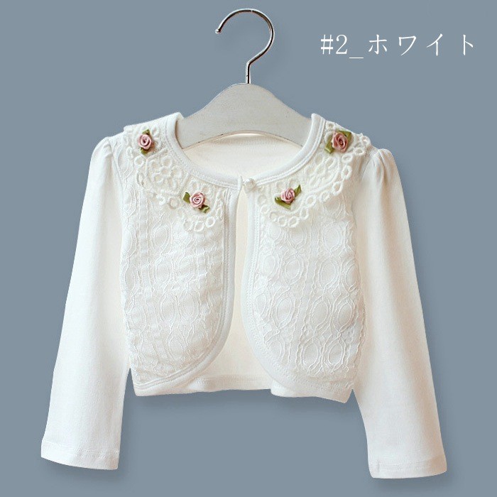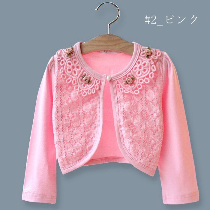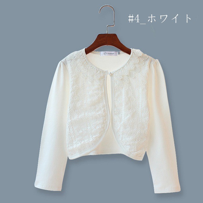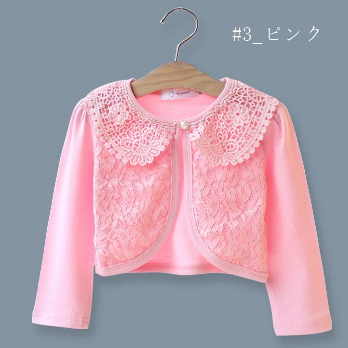 【製品仕様】■商品名子供服 長袖カーディガン 女の子 カーディガン 長袖 キッズ 韓国子供服 パーティー フォーマル 発表会 結婚式■商品説明・発表会、卒入園式などのフォーマルに。・小花模様の二重のレース襟が顔周りを華やかに。・同のところは上品な大柄レース。■カラー:ホワイト、ピンク■材質:コットン、ポリウレタン■サイズ(平置き採寸)100cm: B29cm 総丈26cm 肩幅23cm 袖丈30cm110cm: B30cm 総丈28cm 肩幅24cm 袖丈32cm120cm: B31cm 総丈30cm 肩幅25cm 袖丈34cm130cm: B32cm 総丈31cm 肩幅26cm 袖丈36cm140cm: B33cm 総丈32cm 肩幅27cm 袖丈37cm150cm: B34cm 総丈34cm 肩幅28cm 袖丈38cm160cm: B35cm 総丈35cm 肩幅29cm 袖丈39cm「検索キーワード」フォマールワンピース キッズ ワンピース フォマール