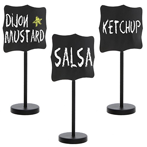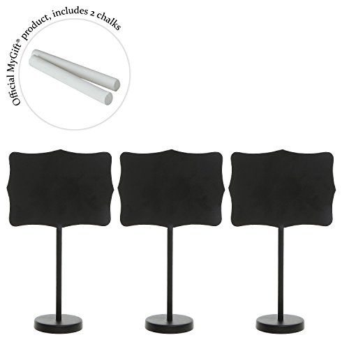 Set of 3 Freestanding Black Metal Erasable Chalkboards / Write On Wedding Place Card & Table Number Signs