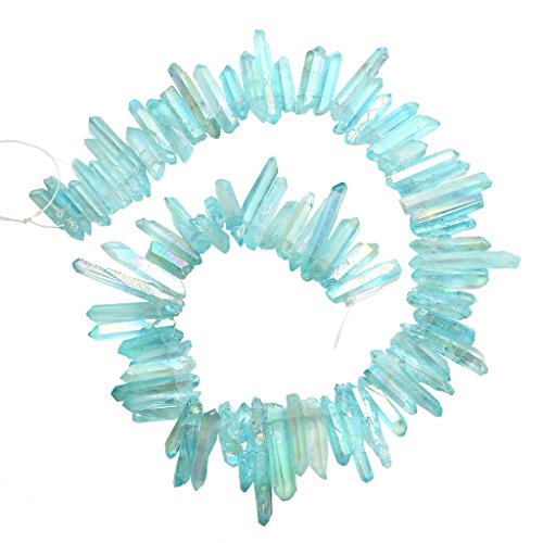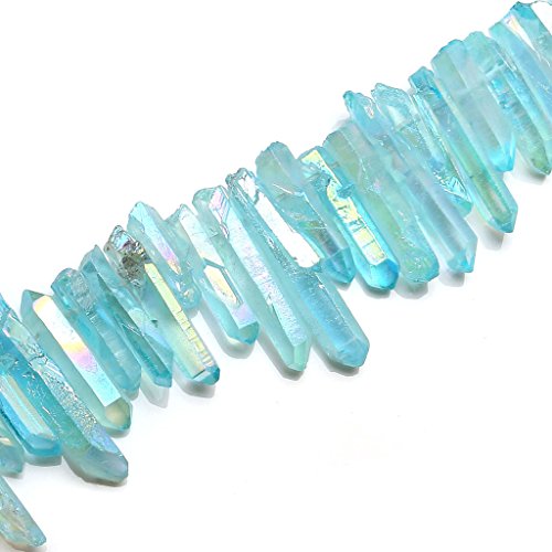 QGEM Aquamarine AB Titanium Coated Natural Crystal Points Quartz Rough Sticks Spikes Point Beads Strand Drilled 15 Inches