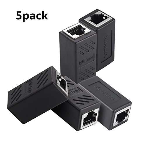XINCA RJ45 Coupler (5 Pack) Cat7/Cat6/Cat5e Ethernet Cable Extender Adapter Female to Female Modular In-Line Coupler (Black)