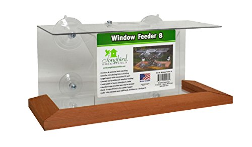 Window Feeder 8 window feeder holds 4 cups of seed in its center hopper. Room at each side for birds to feed. Has a top pivoting cover over the V shaped hopper for ease of filling the feeder. Holds 4 cups.