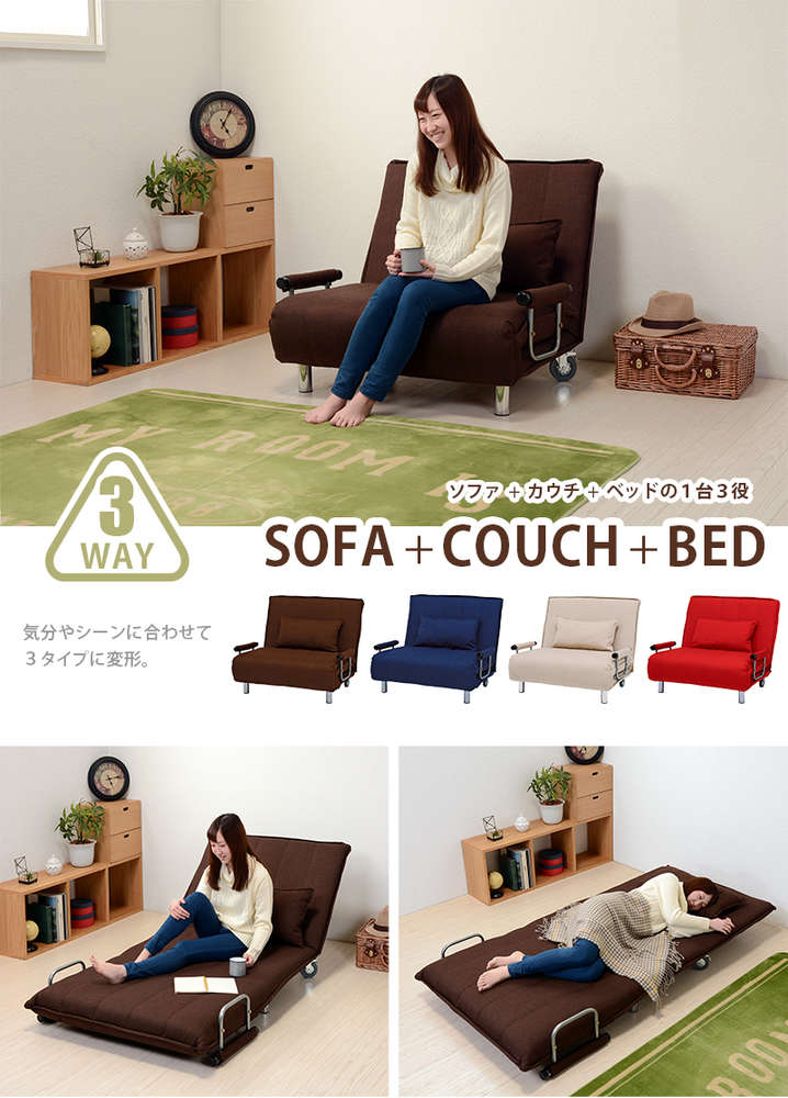 ●シーンに合わせて使用できる、おしゃれかわいいソファベッド。キャスター付で移動もラクラク
