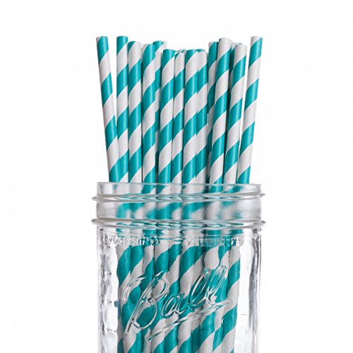 -. Feature : Pack of 25 Retro Aqua Striped Paper Drinking Straws (7-3/4-inch long)-Great for any occasion / Our paper drinking straws are long-lasting, strong and durable, making them great for birthdays, weddings, picnics and much more / These paper straws are 100-percent biodegradable / Made from all natural material with food grade ink / FDA approved