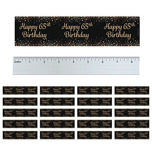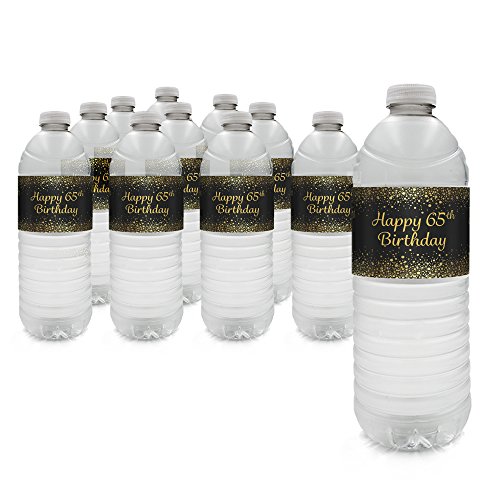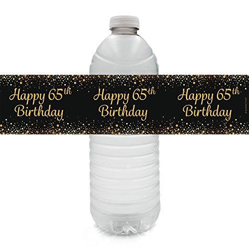 Black and Gold 65th Birthday Party Water Bottle Labels (20 Count)