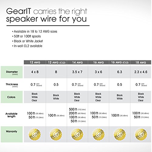 GearIT Pro Series 12 AWG Gauge Speaker Wire Cable, 50 Feet (Black)