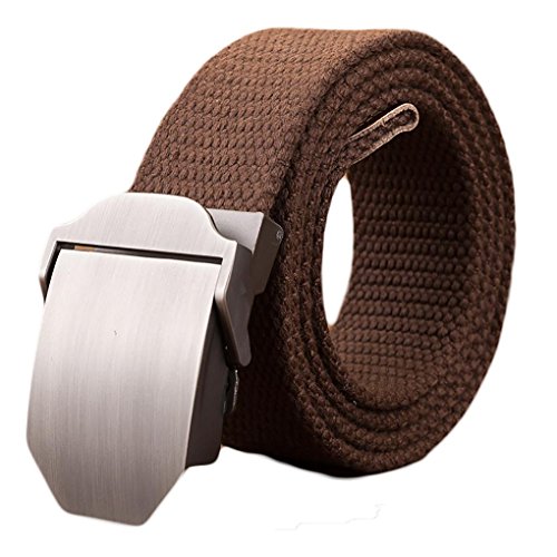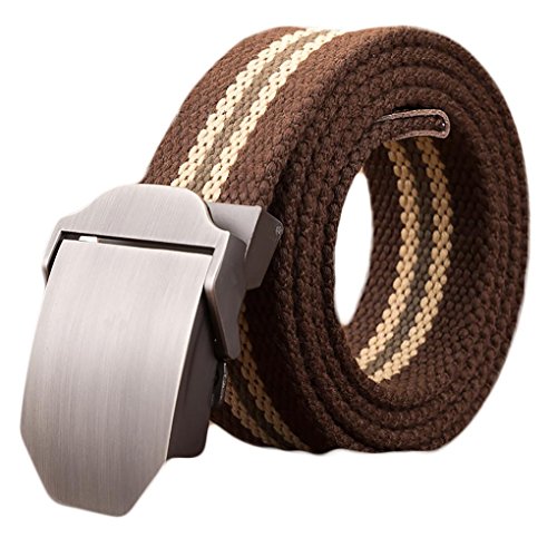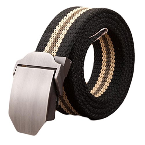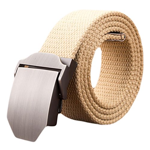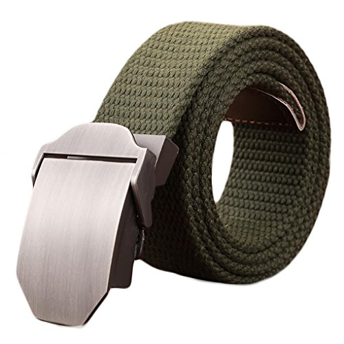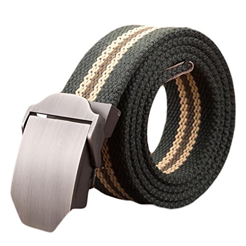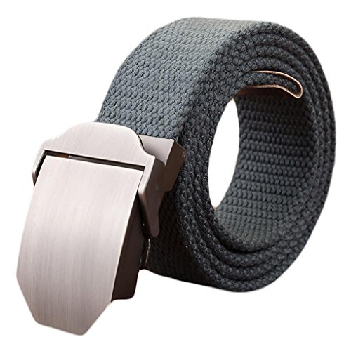 Webbed belt made with canvas and zinc alloy metal buckle. No holes, easy to adjust length and fasten. Wearer can adjust the belt to the exact size needed. Great match with any uniforms. Great for outdoor sports.