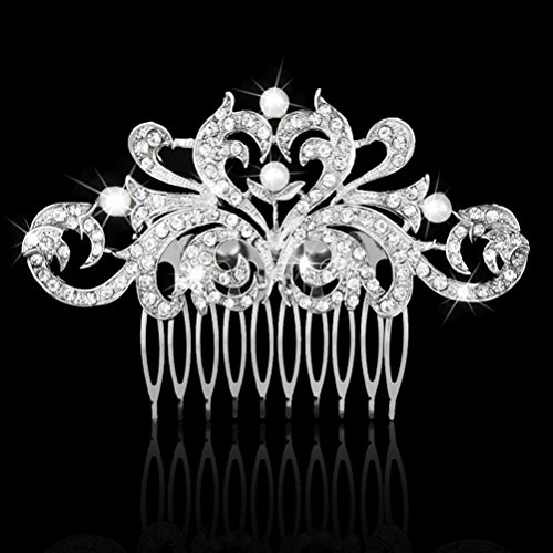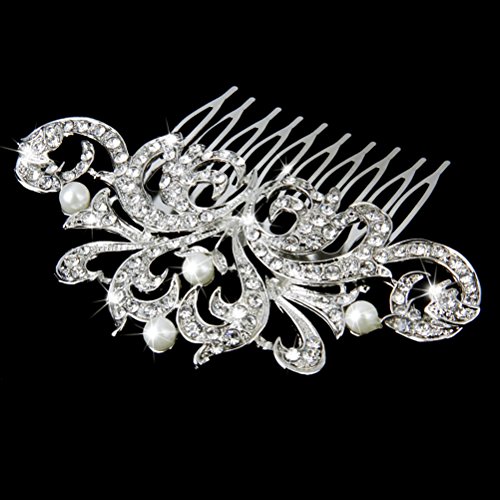 Studio : OULII Publisher : OULII Binding : Health and Beauty Product Description Description The item is a fashion and delicate women39;s girls hair comb clip, which is mainly made of durable hard alloy material, and features crystal rhinestone and pearl decoration to make it more unique and charming. Besides, the hair comb clip is easy to get in the hair and will assure a snug fit on various hair styles. Therefore, it will be a great gift for women who are into fashion trend. Features - Color: mainly silver. - Length: about 9.7 * 6.7cm. - It makes your look noble and add your charm. Package Including 1 * Wedding Bridal Rhinestones Pearl Decoration Hair Comb Clip Hair Pin Hair Accesories (Silver) 0