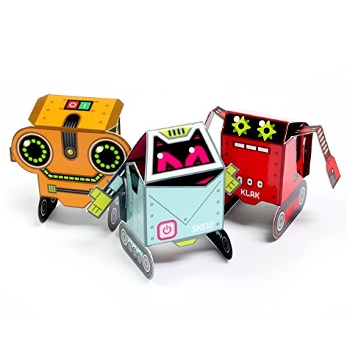 Each pack contains 15 randomly packed OiDroids, which are simple and fun to pop out and build into durable and fun robot paper toys. Just pop out each character, follow the icons for the precreased folds and join the tabs to the slots. No cutting, sticking or gluing is necessary.