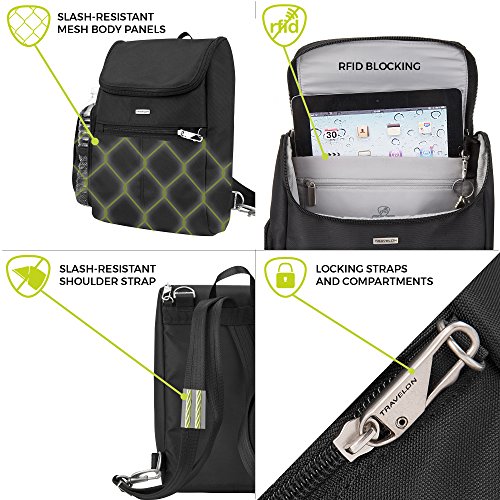 Studio : Travelon Publisher : Travelon Binding : Apparel Product Description This Travelon Anti-Thfet Classic Small Convertible Backpack can be worn as a backpack or a shouldercrossbody bag for ultimate versatility. Enjoy the roomy main compartment with RFID blocking zippered pocket and tethered key clip with LED light. Front zip pocket is perfect for quick grab items and a smart phone. Travel securely and confidentaly with Travelon anti-theft technology, including slash-resistant construction, locking compartments, slash-resistant and locking straps to keep you and your belongings protected. 0