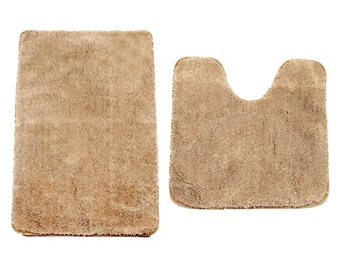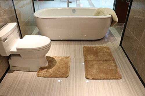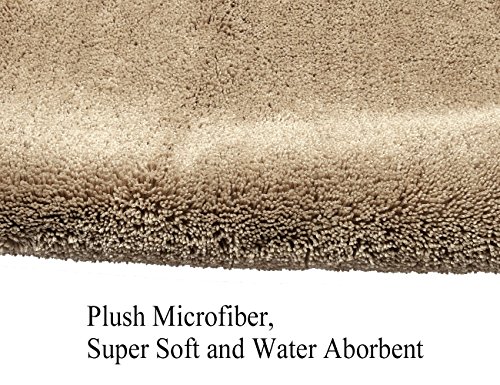 Pauwer Bath Rug Set 2 Piece Microfiber Bathroom Rugs 21" x 34" with Contour Mat 20"x 20" for bathroom (Khaki)
