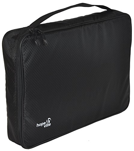-. Feature : EXTREMLY PRACTICAL - The HOPEVILLE packing folder with the size of 16.5'' (length) x 12.2 (width) x 3,1'' (hight) provides enough space for up to 5 shirts, blouses or T-Shirts of any size which can be safely fixed with an extra spread velcro fastener for a wrinkle free transport of the travel luggage. / ORDER GUARANTEED - For a special protection of the shirts against dirt, wrinkles and dust, the suitcase organiser is reinforced on the top and bottom area. / EXTRA LIGHT - With a total weight of 13.4 oz the shirt bag is made from sturdy and water repellent but still very light nylon fabric. The double high-quality YKK ® zippers with additonal pulling straps will let you open and close the suitcase organizers comfortable and fast. / HIGH-QUALITY - The great Space Saver for Trips has its own carry handle for an easy transport and the compact measurements of the shirtbag are matched with commercial hand luggage suitcases. / VERSATILE APPLICATIONS - An extra pocket with mesh fabric provided additional space inside the packing organizer for small items like accessoires and also ties and belts can be safely stored with the help of 3 elastic bands.