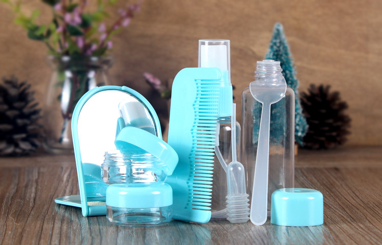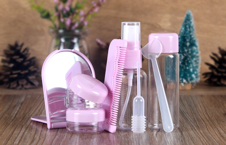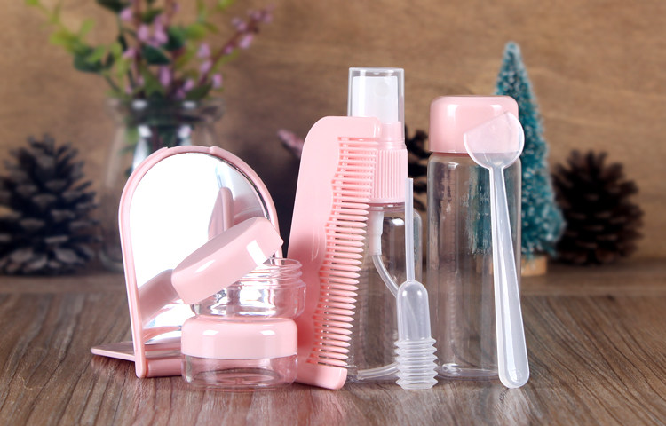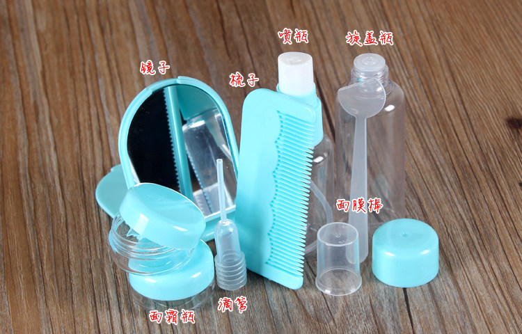 面霜瓶*2个、旋盖瓶*1个、喷雾瓶*1个、化妆镜*1个、梳子*1把、面膜棒*1支、滴管*1支