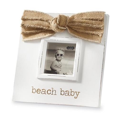 -. Title : Mud Pie Beach Baby Wood Photo Frame Burlap Bow 3" x 3"