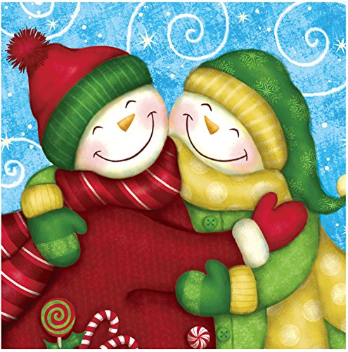 Creative Converting Wintertime Greetings Beverage Napkins, Red/Green/Blue