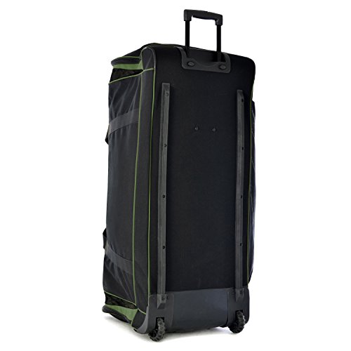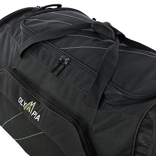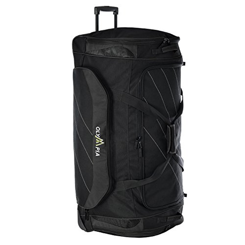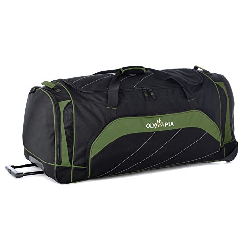 -. Binding : Apparel -. Brand : Olympia -. ClothingSize : One Size -. Department : unisex-adult -. Feature : Recessed in-line skate metal ball bearing wheels with traction / Umbo push button retractable handle with zipper closure / Convenient pockets for maximum packing capacity / U-top opening to roomy main compartment / 17x18x40 / 8 Convenient pockets for maximum packing capacity / Self-reparing zippers and Guard rails on the back for extra protection / Top & bottom zipper pockets for extra packing capacity / size-40"x18"x17" -. Label : Olympia Lage -. Manufacturer : Olympia Lage -. Model : RD-6040 -. MPN : RD-6040 -. NumberOfItems : 1 -. PackageQuantity : 1 -. PartNumber : RD-6040 -. ProductGroup : Apparel -. ProductTypeName : LAGE -. Publisher : Olympia Lage -. Size : One Size -. Studio : Olympia Lage -. Title : Olympia Jumbo Sized Rolling Duffel Mammoth 40 Inch Size