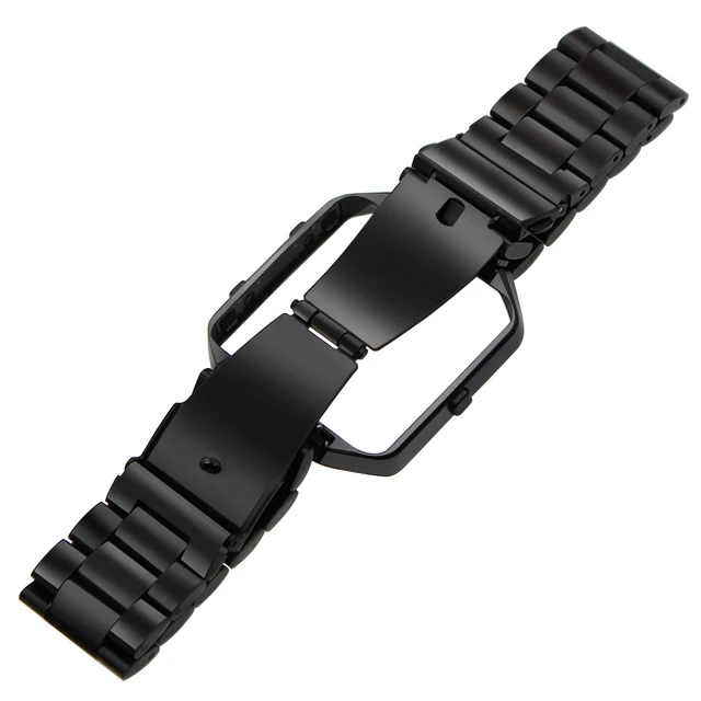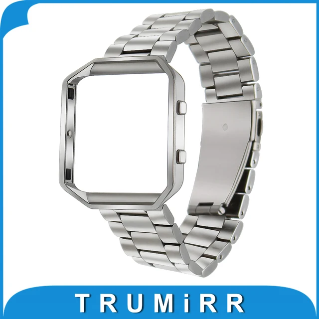 | [해외] 23 미리메터 스테인레스 스틸 손목 금속 프레임 핏 비트 블레이즈 스마트 피트니스 시계 밴드 손목 스트랩 팔찌 블랙 실버 |