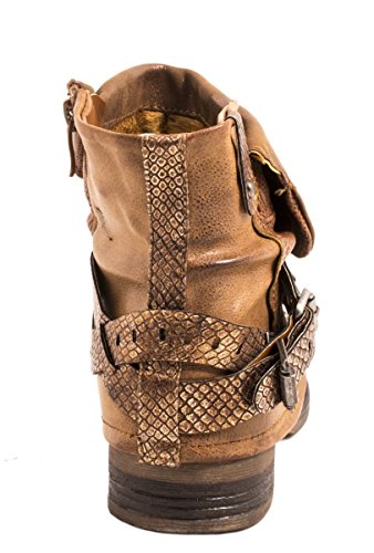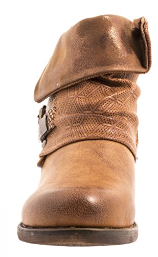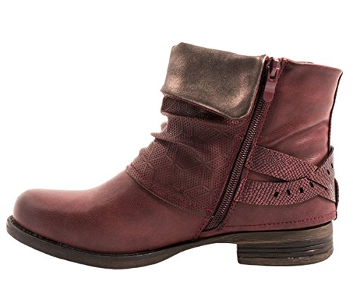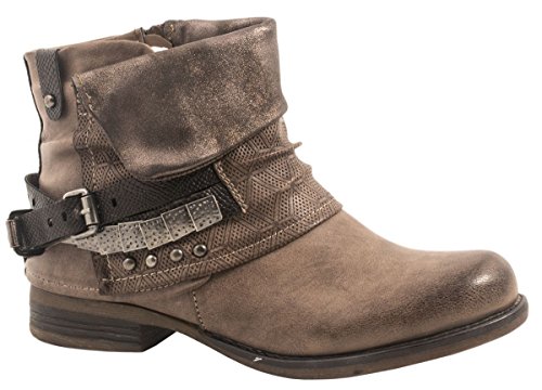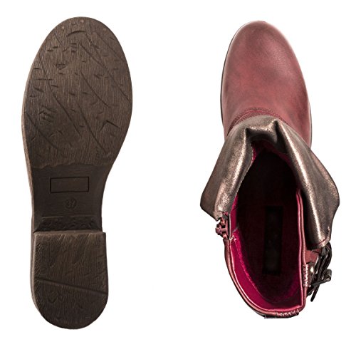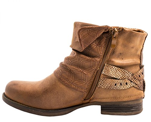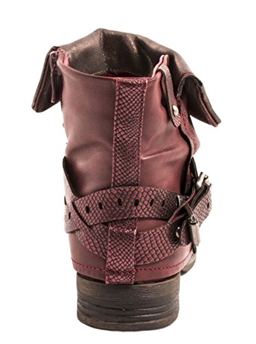 -. Title : Elara Damen Biker Boots | Metallic Prints Schnallen | Nieten Stiefeletten Lederoptik