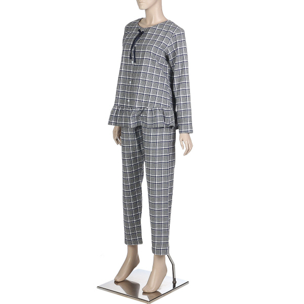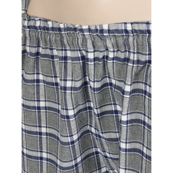 여성 기모 타탄체크 잠옷 얇은 기모로 따듯하게 착용가능한 여성 파자마입니다. 짙은 그레이 컬러와 블루계열 타탄체크 스타일로 따듯한 느낌을 주는 상품입니다. 얇고 따뜻해 가볍게 착용가능하며, 여유로운 허리밴딩 라인으로 배김없이 편하게 착용 가능합니다.