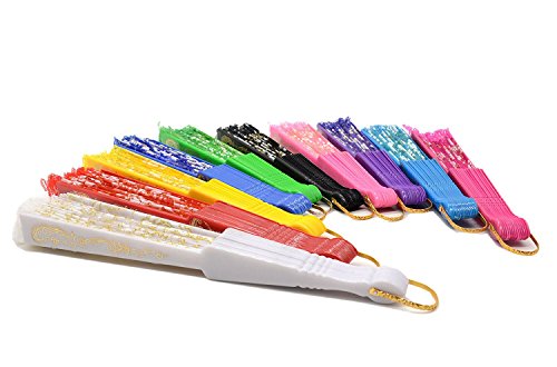 Leehome "Rose Lace" Folding Hand Held Fans Bulk for Women -Chinese / Spanish / Japanese Vintage Retro Fabric Fans for Gifts and Wedding ((Mixed Colors, 10pcs))