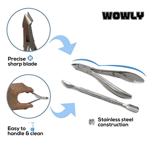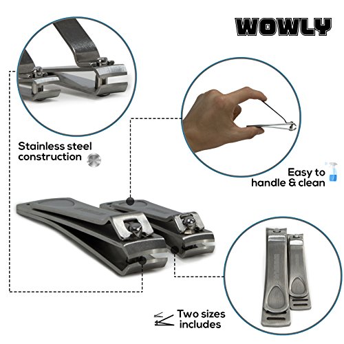 Studio : Wowly Publisher : Wowly Binding : Misc. Product Description Get the wowly set of 2 precision nail clippers with lifetime guarantee at our introductory price - the best nail trimmer and manicure set on amazon. 1 Toenail clipper for thick nails (3.1 Inches) and 1 fingernail clipper (2.5 Inches). Focus on design for maximum comfort and high precision cuts. Made of stainless steel with mate finish, these cutters will last forever. Easy to clean, won't rust like others, sturdy and well-constructed. Just scroll to the top and add to cart. 0