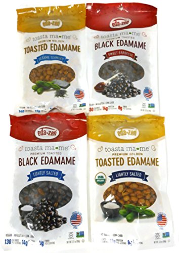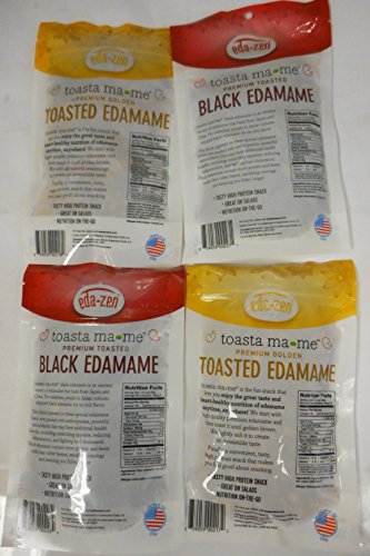 Toasted Edamame Flavor Bundle of Four 3.5 oz Bags: Golden Lightly Salted, Black Sweet Barbecue, Black Lightly Salted, and Golden Sesame Seaweed