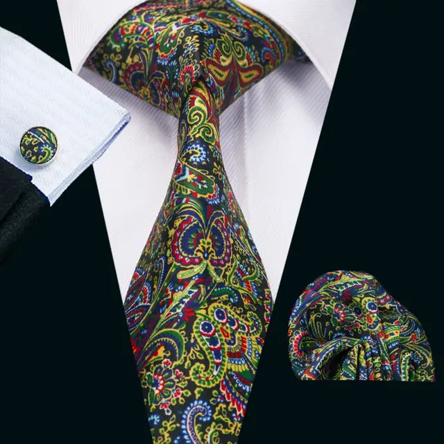 LS-1227 새로운 도착 패션 코튼 남성 고품질 브랜드 디자인 넥타이 손수건 커프스 세트 웨딩 파티