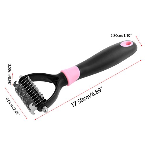 -. Binding : Misc. -. Brand : Itemap -. Feature : Material: PP + TPE Environmentally friendly materials. / Size:(lL*W*H)17.6*6.60*2.50cm/6.89"*2.60"*0.98". / Color:Pink,Blue,Round smooth head and wouldn't hurt your pet. / Suitable for pet fur grooming and daily massage, make your pet fur shinier. / The grip handle keeps your hand in a natural position to reduce fatigue. Non-slip rubber coating provides greater control for safe, effective mat removal with minimal effort. -. Label : Itemap -. Manufacturer : Itemap -. MPN : Itemap_D20128 -. PackageQuantity : 1 -. PartNumber : Itemap_D20128 -. ProductGroup : Pet Products -. ProductTypeName : PET_SUPPLIES -. Publisher : Itemap -. Studio : Itemap -. Title : Itemap Pet Dog Cat Fur Grooming Rake Knot Cutter Remove Shedding Brush Comb