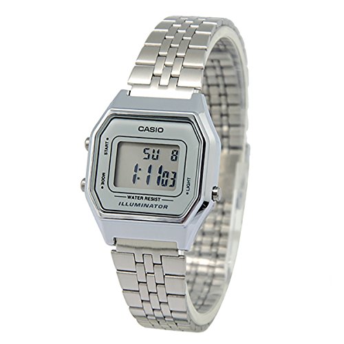 -. Title : Casio Ladies Mid-Size Silver Tone Digital Retro Watch LA-680WA-7DF