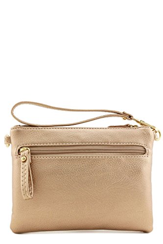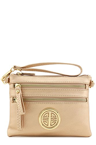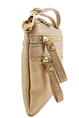 Multi Zipper Pocket Crossbody Bag, Total 3 zipper pockets at outside and 1 zipper pocket inside. It can be used as wristlet purse or crossbody bag.