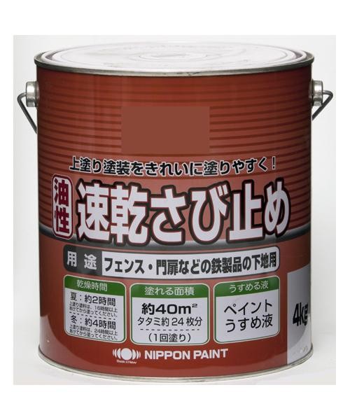 【特長】 ・さび止め効果がよく、素材や上塗りとの付着性に優れています。 ・上塗り塗料は油性塗料が適しています。 水性塗料も使えますが、この「速乾さび止め」の乾燥が不十分な場合は、 ひび割れたり、はがれたりすることがありますので、ご注意ください。 (ラッカー系塗料は塗装できません。)