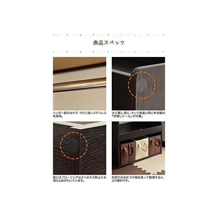Ottostyle.jp ottostyle.jp 키즈 행거 셸프 정리(정돈) lak 브라운 와이드 사이즈 폭66cm×(길이)깊이32cm×높이120cm