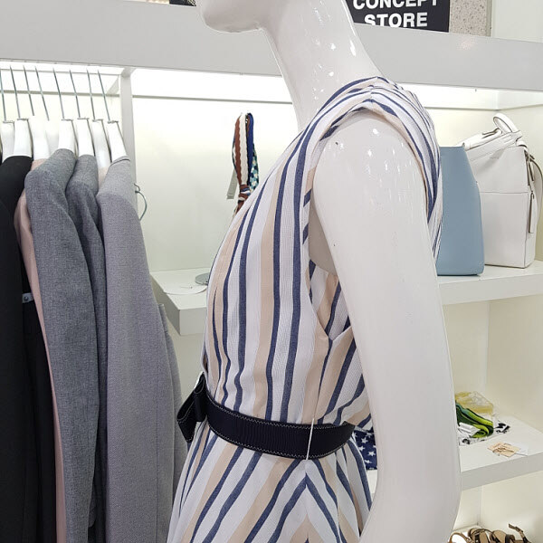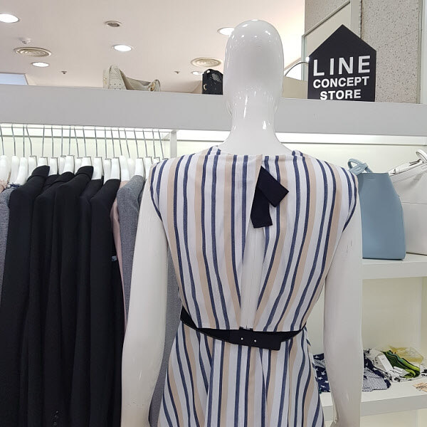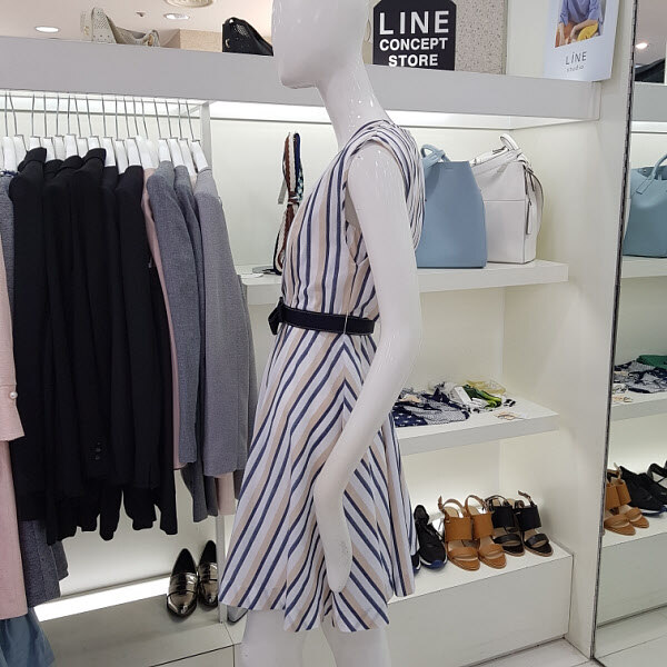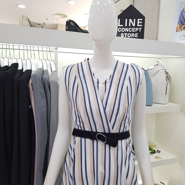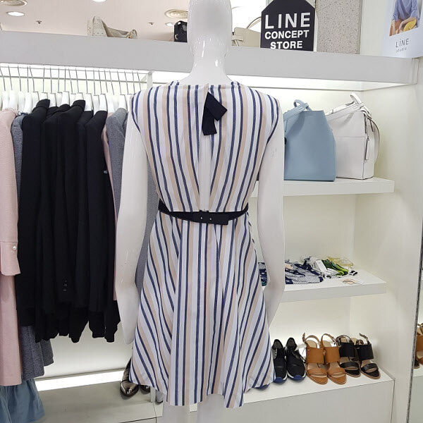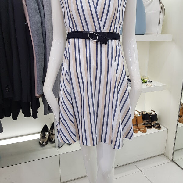 17년 여름 스트라이프 민소매원피스입니다.네크라인 브이넥 포인트로 여성스럽고 세련되게 연출하기 좋은 아이템입니다.가디건이나자켓이랑 코디해서 착용 하셔도예쁜원피스입니다.모임룩이나 휴양지룩으로도 연출해보세요